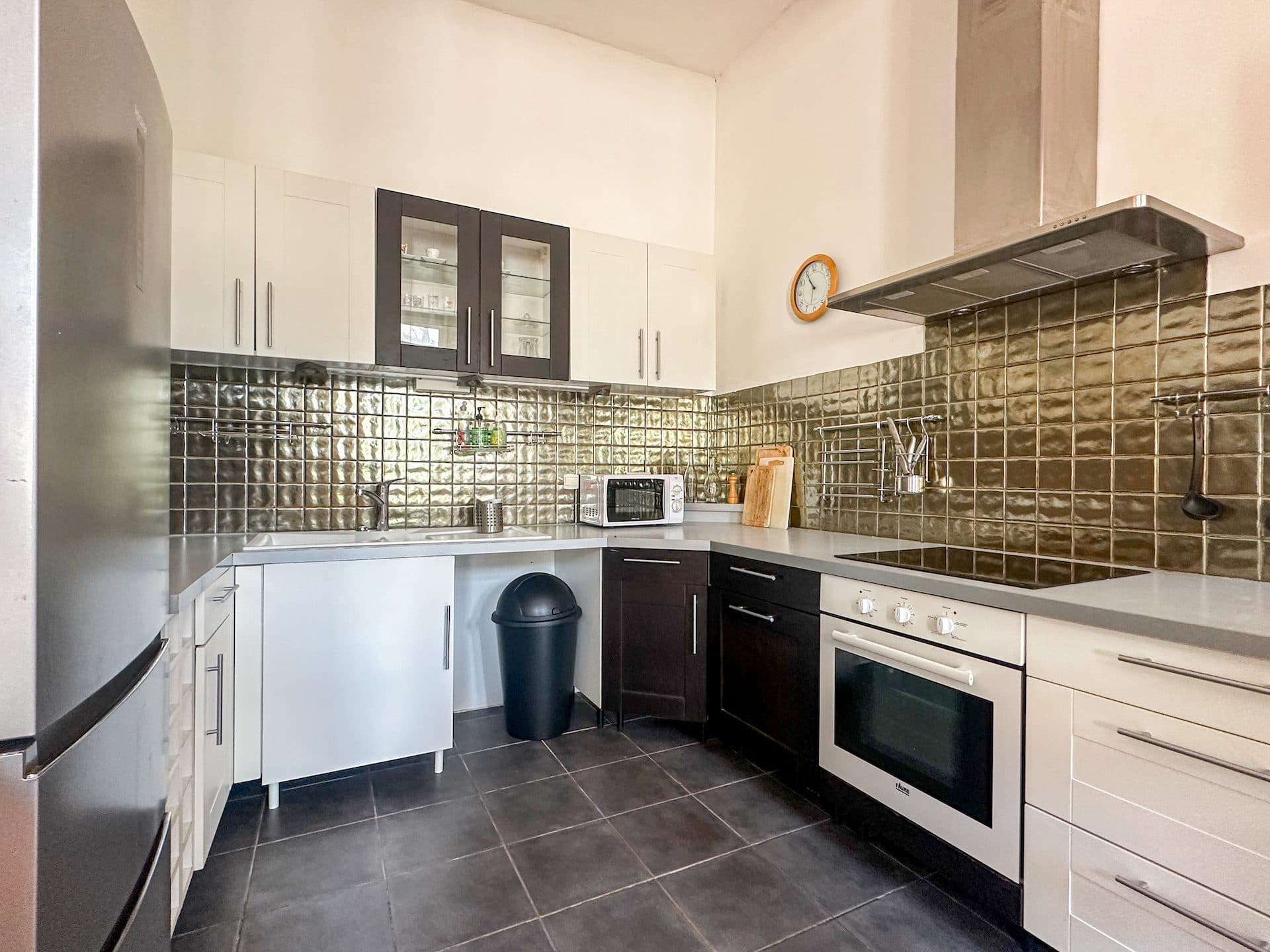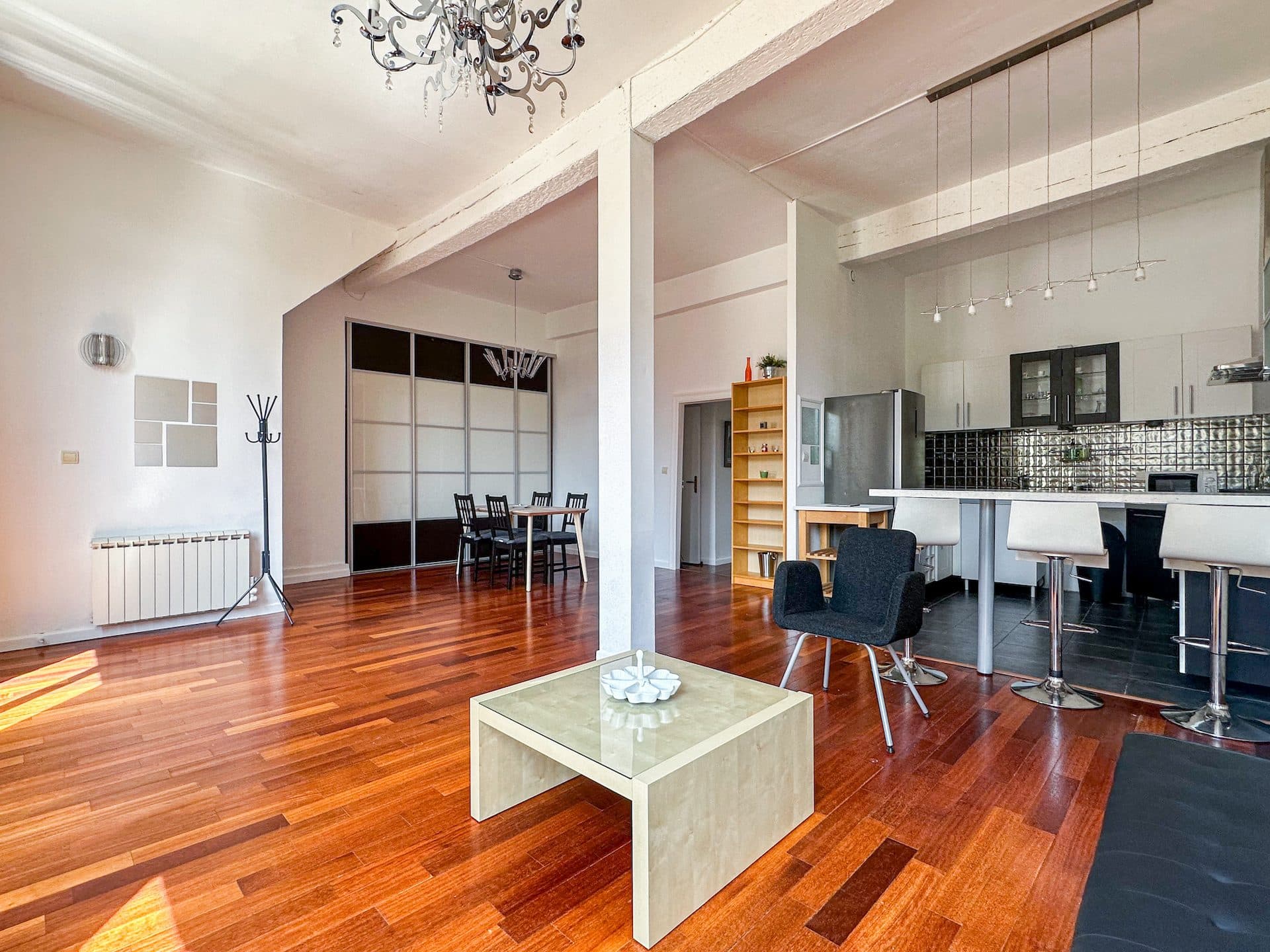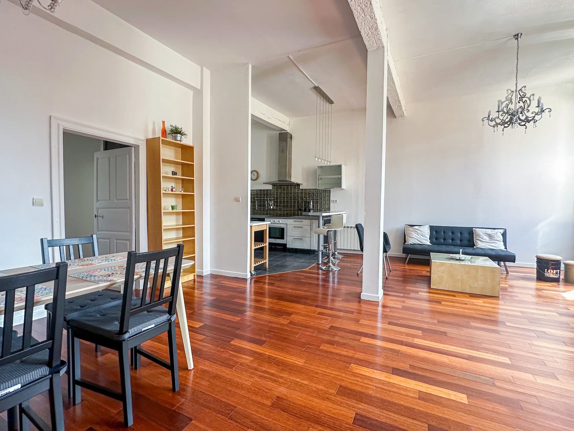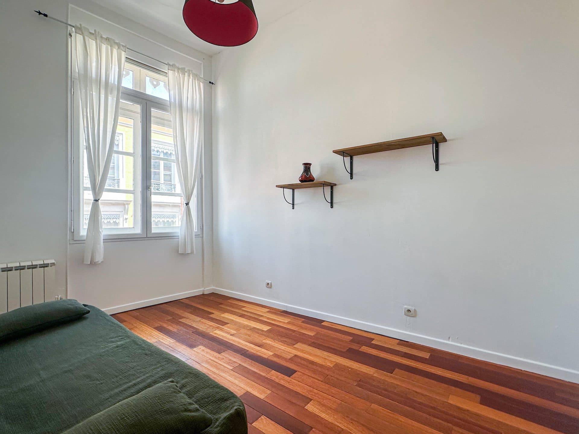 Il se compose d’une cuisine entièrement équipée ouverte sur un séjour lumineux. Cette pièce de plus de 45m2 avec belle hauteur sous plafond offre une vue sur les Jacobins. Le couloir avec placard intégrant machine à laver et sèche linge dessert la partie nuit composée de deux chambres, et d’une salle de bains avec wc séparés.